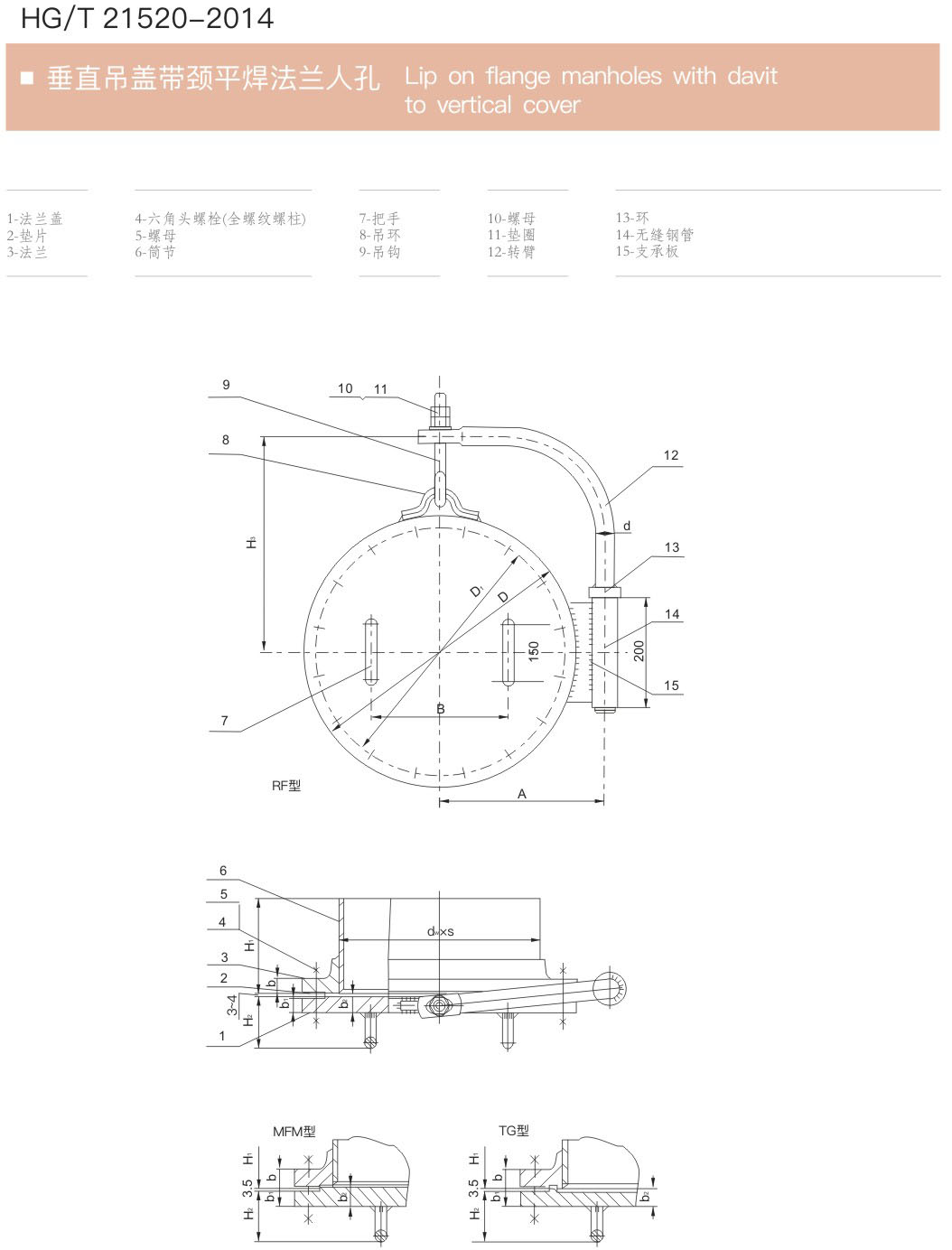 Главная / Продукт / HG/T 21514-2014 / Lip on flange manholes with davitto vertical cover HG/T 21514-2014 Lip on flange manholes with davitto vertical cover