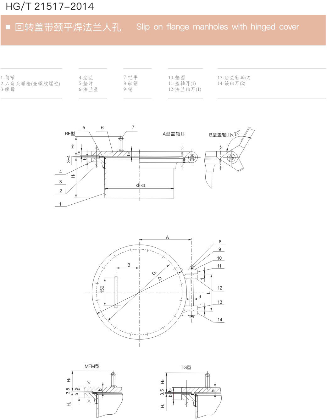 Home / Product / HG/T 21514-2014 / Slip on flange manholes with hinged cover HG/T 21514-2014 Slip on flange manholes with hinged cover